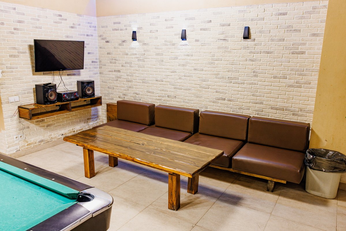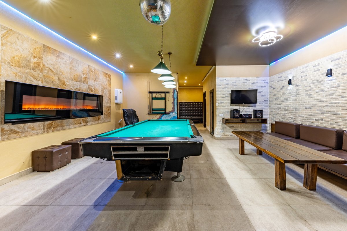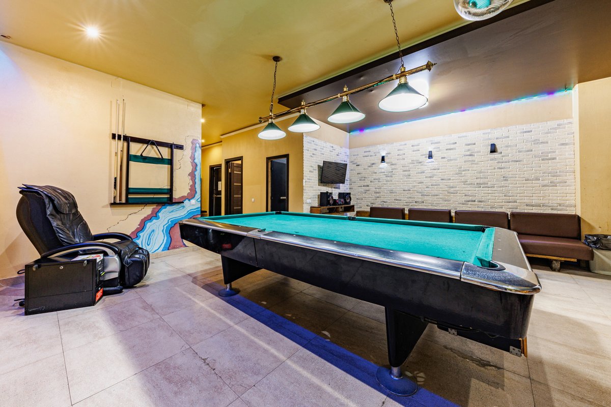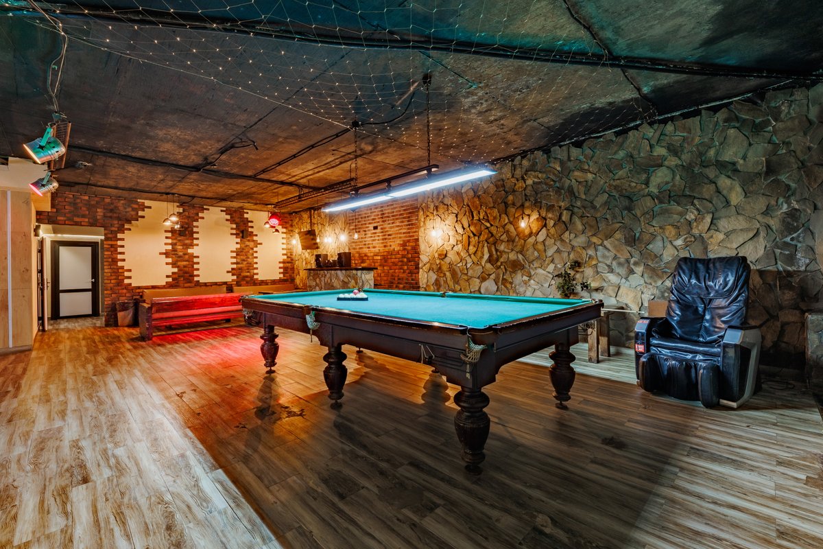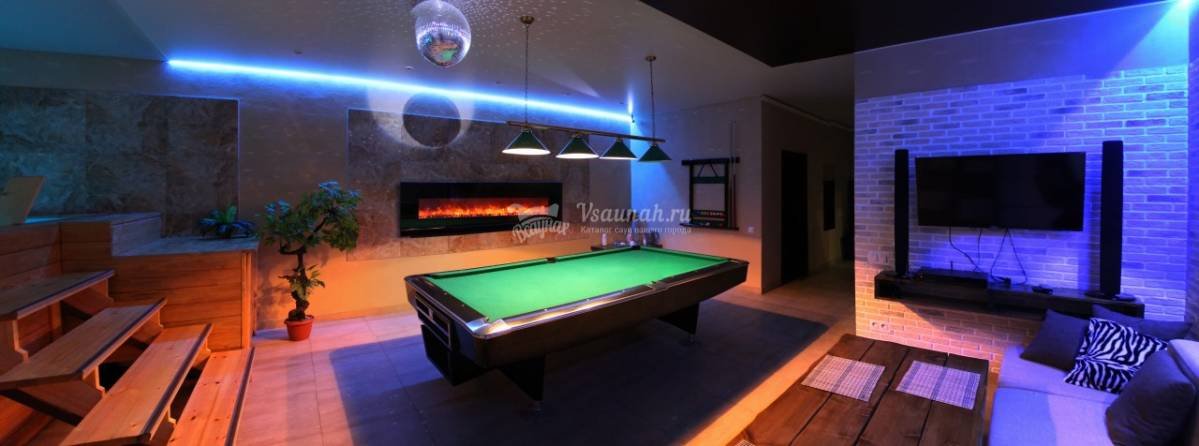 Не хочется в бассейн? Не беда! Вместо этого можно посидеть в нашей комнате отдыха. Мы ставили своей целью создать здесь уютный, практичный интерьер из преимущественно натуральных, безопасных материалов, подобрать мебель, которая будет в равной степени удобной и красивой. Надеемся, что он придется вам по душе! Для поддержания атмосферы отдыха мы можем предложить вам бильярд и камин. Также у нас имеется бар, а при необходимости вы можете принести и собственную еду - мы не возражаем! Главное помните, что плотная трапеза незадолго перед посещением парной - это не самая удачная идея, по мнению врачей. А вот после парной она совсем не повредит!